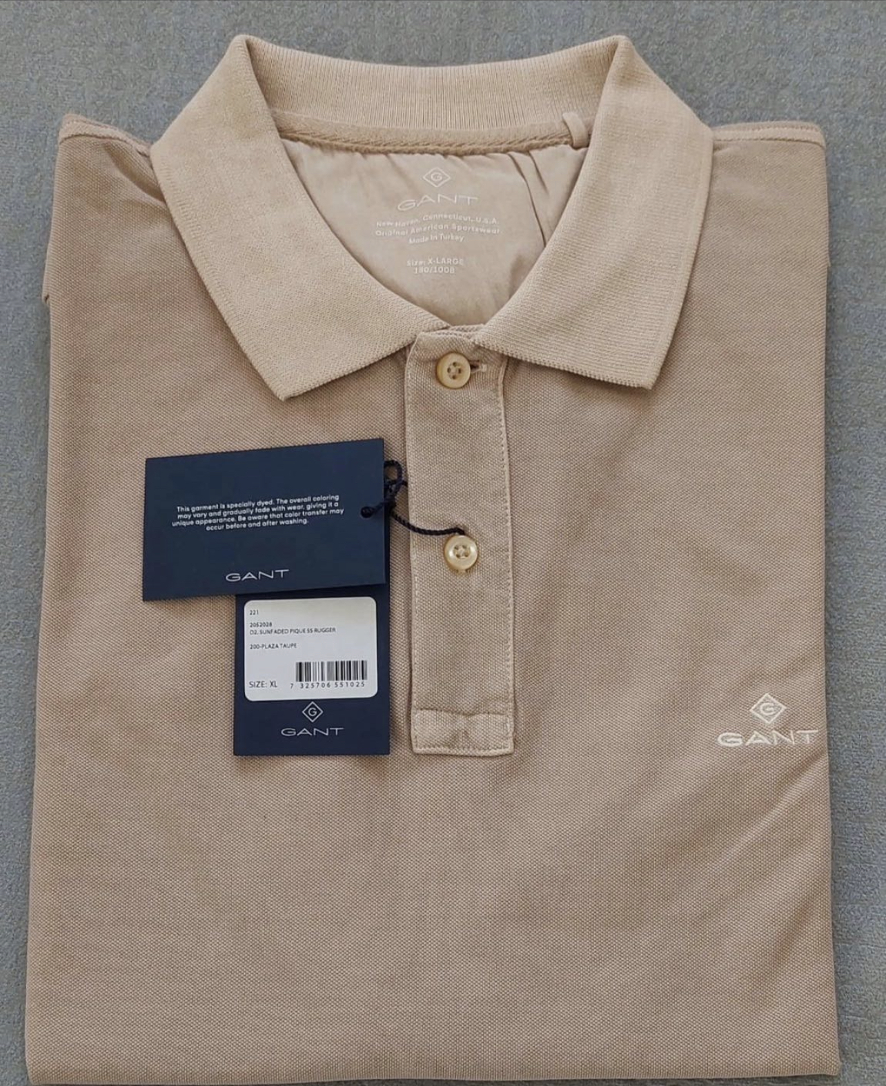 Gant orijinal bej renk yikama kumas Polo yaka tişört. %100 coton