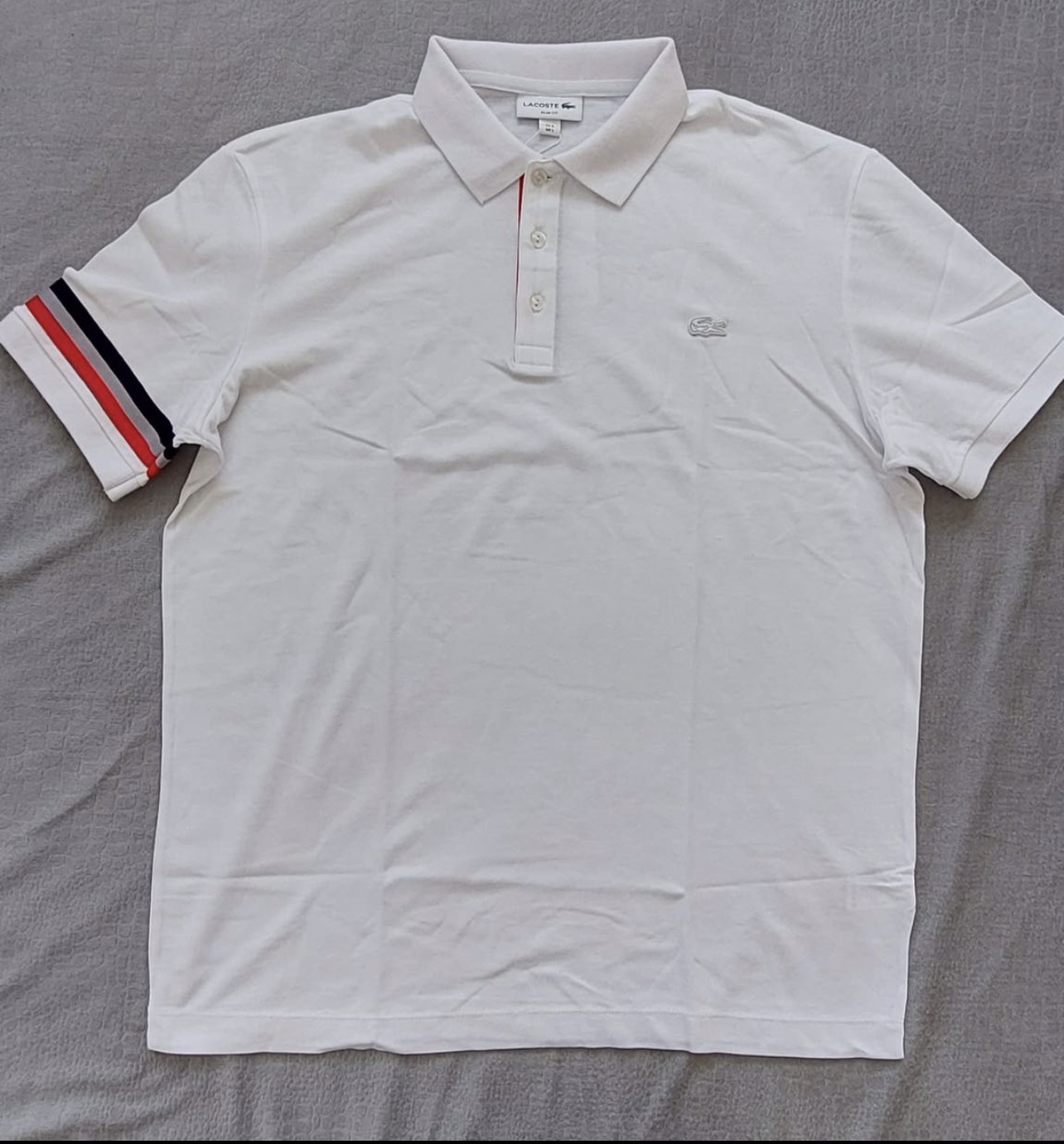 Lacoste orijinal %100 pamuk beyaz polo yaka tshirt.%100 orijinal .Ebatlar L beden Iki Kol Arasi 61 cm Boy:74