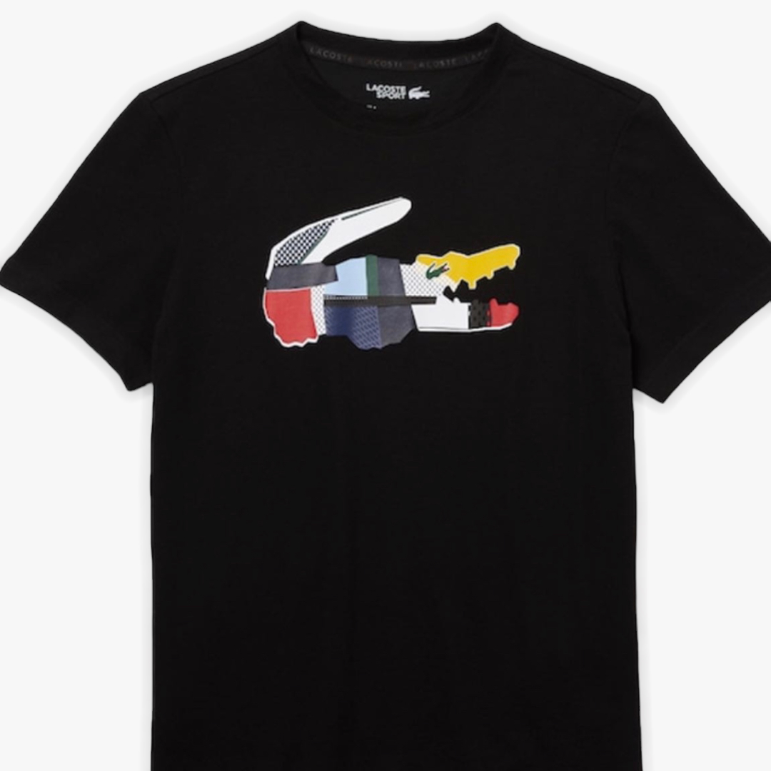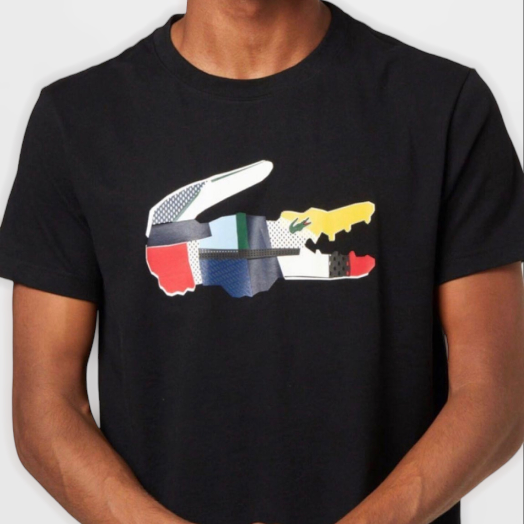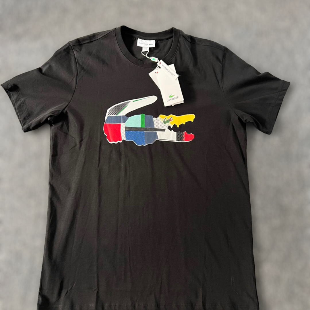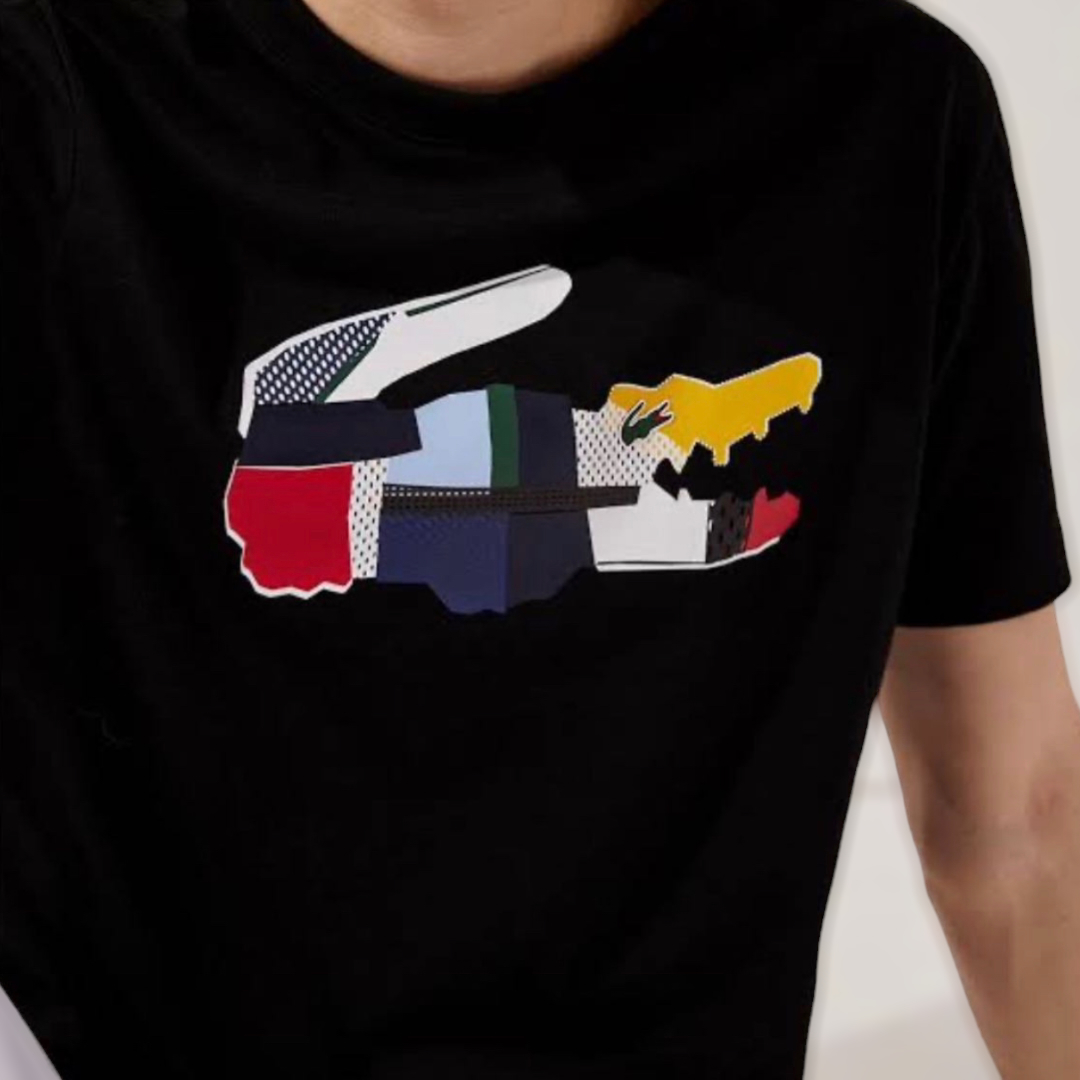 Bisiklet yaka %100 Coton .Normal kesim.Gögüste büyük boy patchwork timsah baskisi.