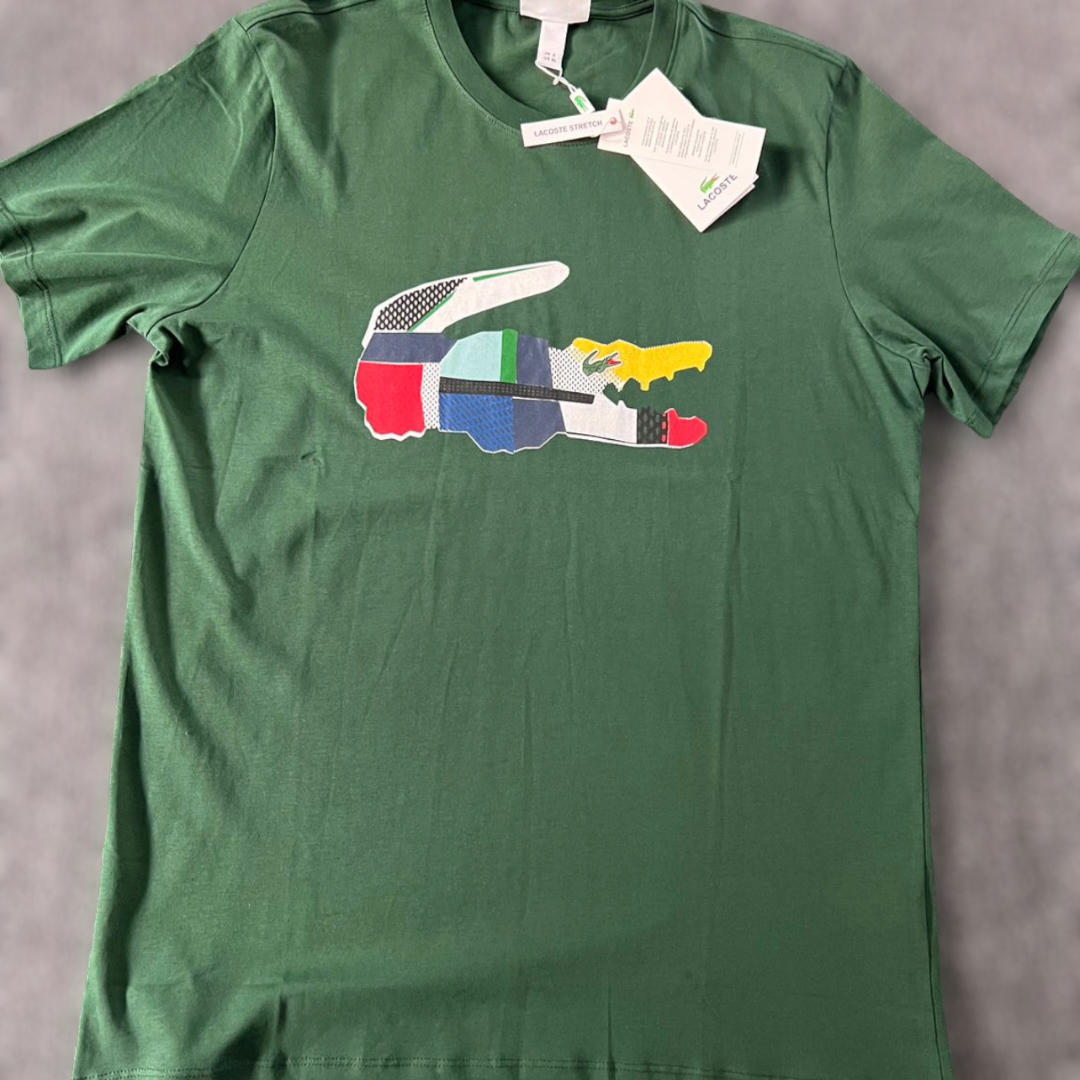 Bisiklet yaka %100 Coton .Normal kesim.Gögüste büyük boy patchwork timsah baskisi