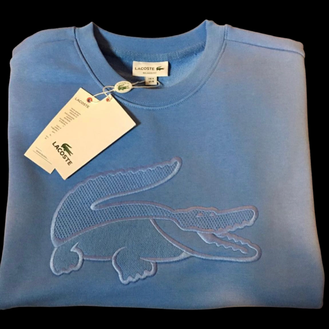 •Lacoste orijinal bisiklet yaka relaxed fit baskili %100 pamuk mavi renk sewatshirt. M beden Ebatlar Iki Kol Arasi :58 cm Boy:69 cm