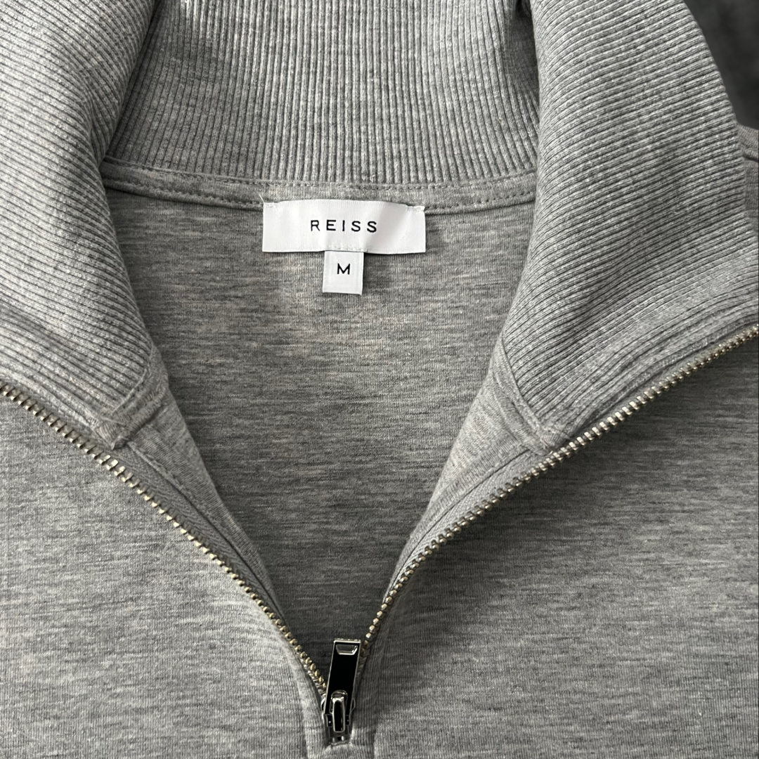 Yumusacik doku, yarim fermuarli sweatshirt. Kot pantolonlarla, salon kiyafetleriyle veya egzersiz sonrasi giyebileceginiz bu sweatshirt, gardirobunuzun en sevilen parçalarindan biri olacak.Uzun Kollu Yarim Fermuarli Regular Fit . Görseldeki Beden Ölçüsü M; Iki kol arasi 54cm boy 65 cm # Reiss # yarim fermuarli # sweatshirt