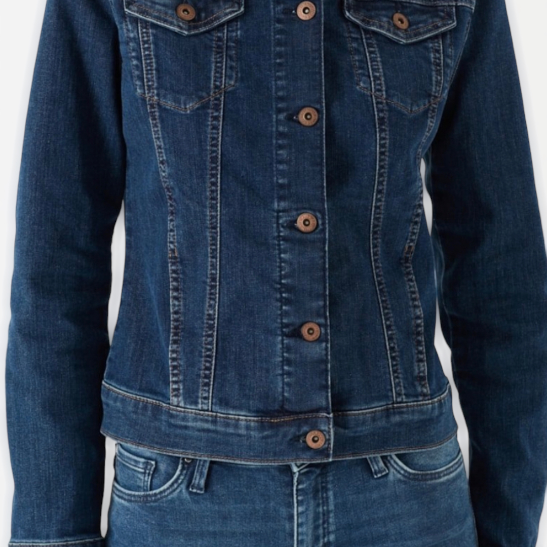 Mavi Cep Detayli Uzun Kollu Kadin Jean Ceket.